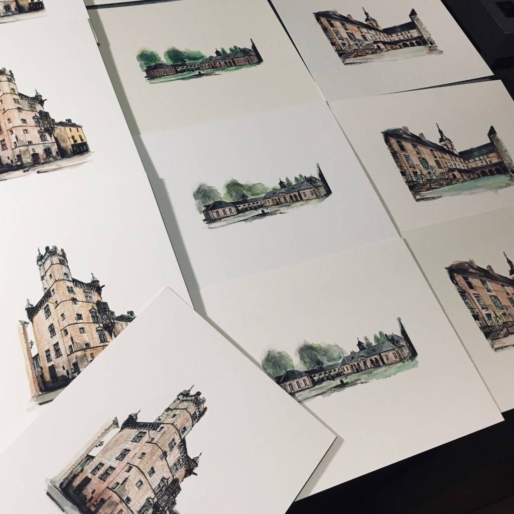 Impression jet d’encre, mise en couleur unique à l’aquarelle, format A5